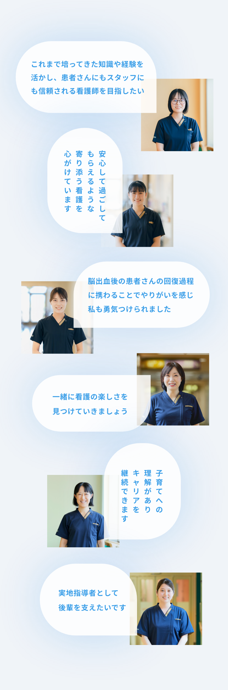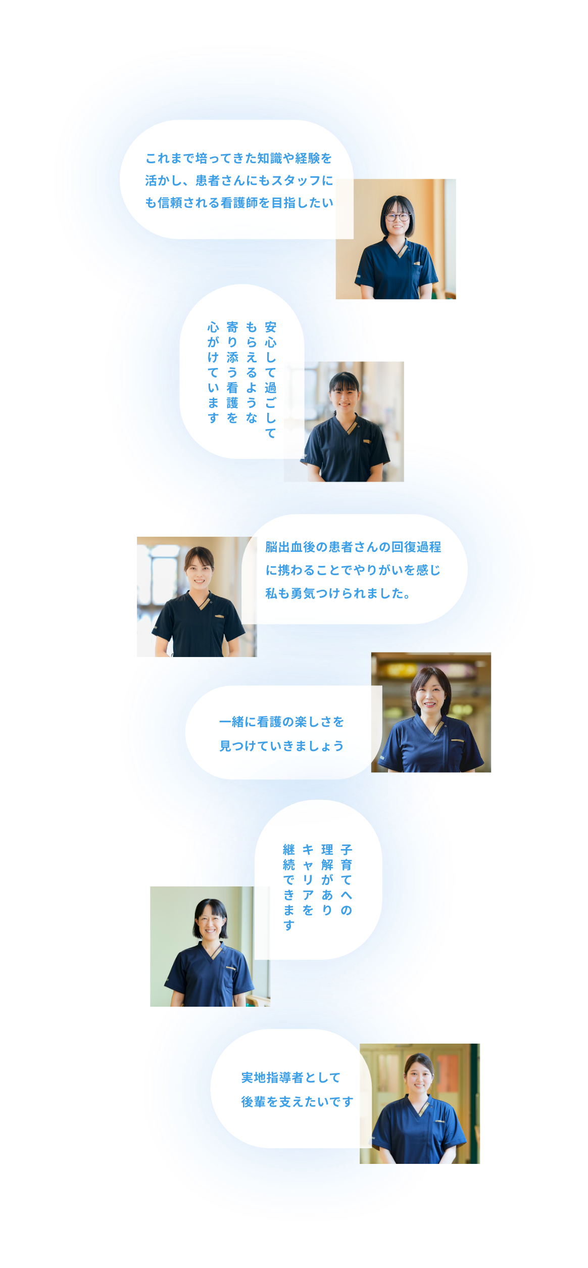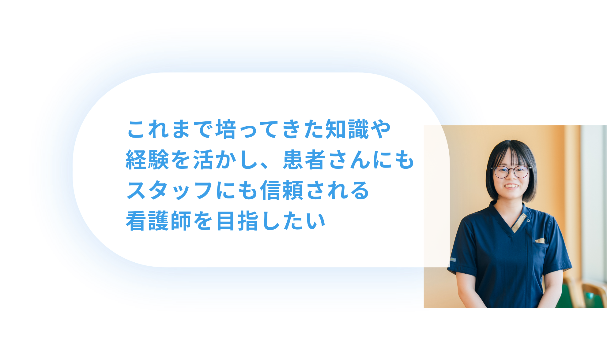 滋賀医大で働く先輩ナースのアドバイスや エピソードをお贈りします。 現場で働くナースの声が、看護の道を歩むあなたの 未来への一歩を後押しします。